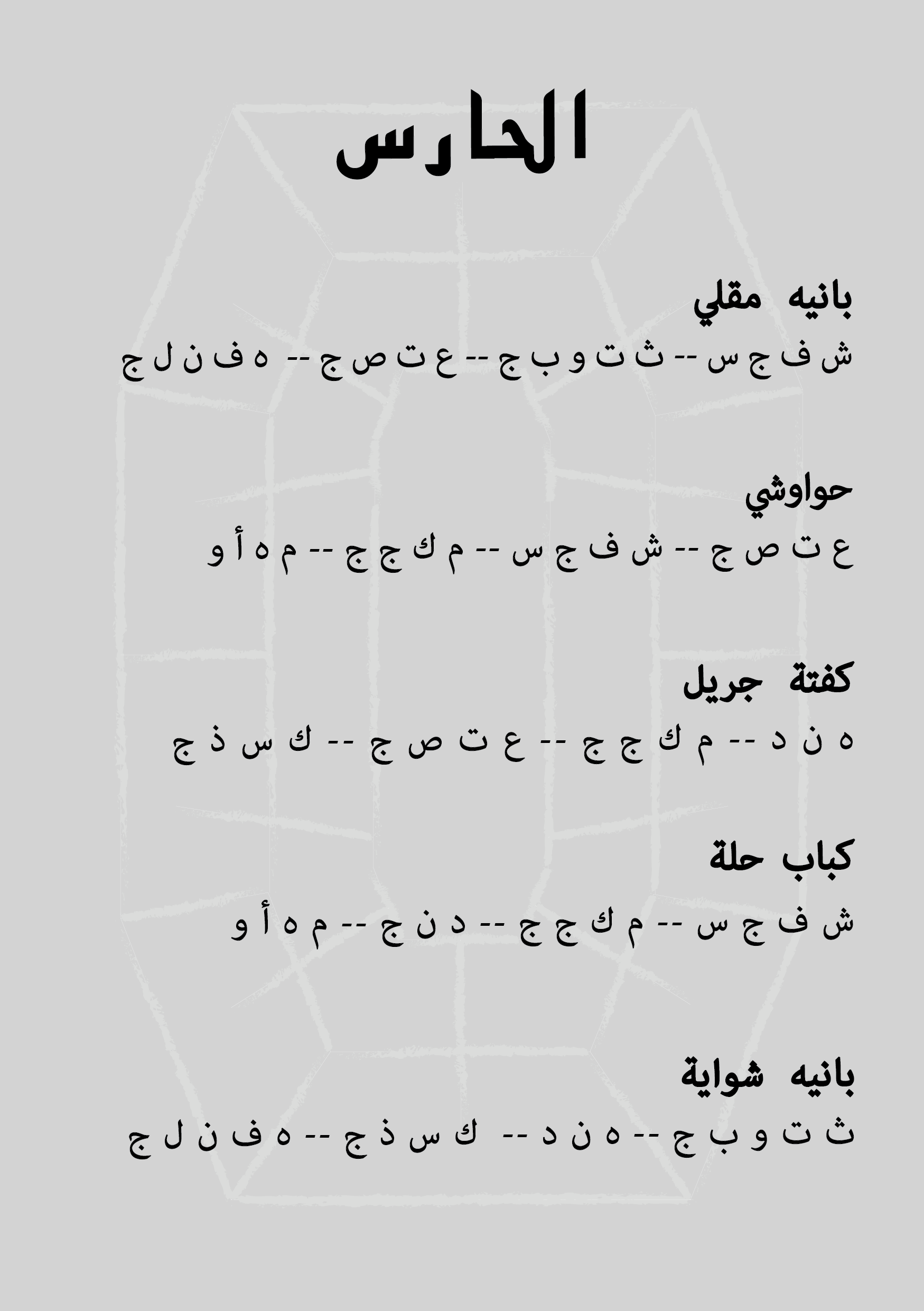– Guard card contains a set of probable plates and their encrypted ingredients.