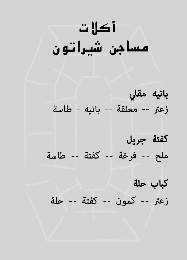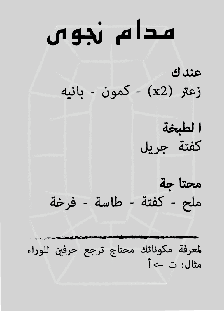 – The guard says out loud the number of the apartment and the name of the plate for example (apartment 2 is cooking Kofta). And the player in that apartment replies if it’s true or false.